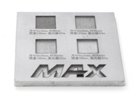 (2)金属深雕:金属深雕一般使用焦距(焦深)短的场镜,当高功率深雕时,由于热透镜效应,材料处能量密度迅速下降,造成金属打不深。由于光学元件中心比边缘膨胀大,出现中心浅,四周深现象(深度不一致)。