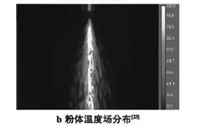 超高速激光熔覆粉体在进入熔池前受激光辐照已发生熔化,因此获得粉体的温度场分布尤为重要。波兰弗罗茨瓦夫大学的Koruba等人[23]采用高速摄像机与红外热像仪对喷出粉体的形貌与温度分布进行了采集,如图6所示。通过对比和修正采集的数据,Koruba指出短波红外和中波红外谱带更有利于表征激光与粉体材料的相互作用情况。为确定激光能量的分配比例,弗劳恩霍夫激光技术研究所Thomas[12]和Kelbassa[6]测量了激光通过粉体后能量的衰减,由此获得粉体材料对激光的吸收情况,测量装置如图6c所示。测试结果显示激光穿过粉体后剩余能量随送粉率的增加而减小,随粉体颗粒直径的减小而减小。